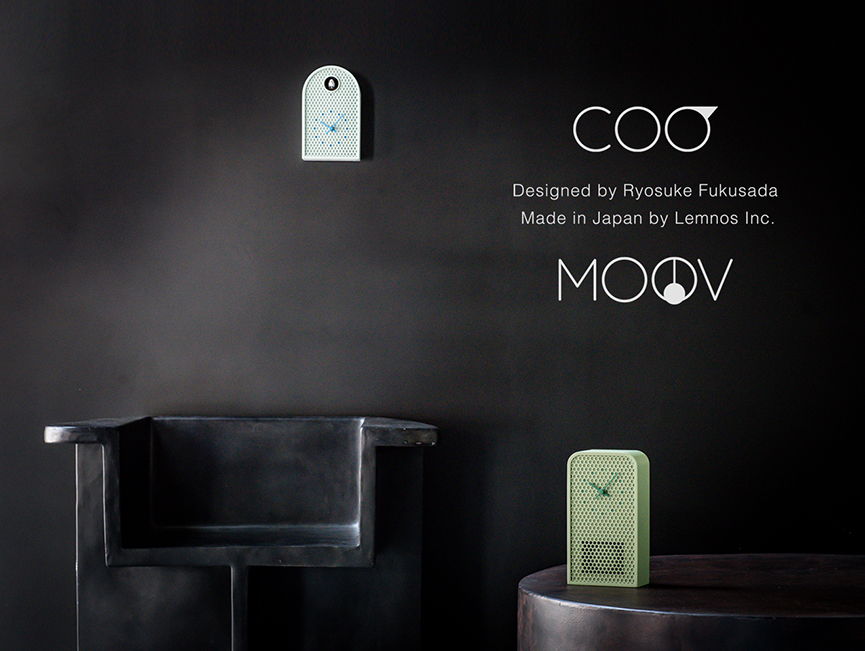 The new COO and MOOV clocks will be exhibited at the Takata Lemnos stand. The cuckoo clock and pendulum clock made of perforated metal with numerous holes give a graphical and light impression, creating a new form of clock that is lovely and suitable for modern interiors.